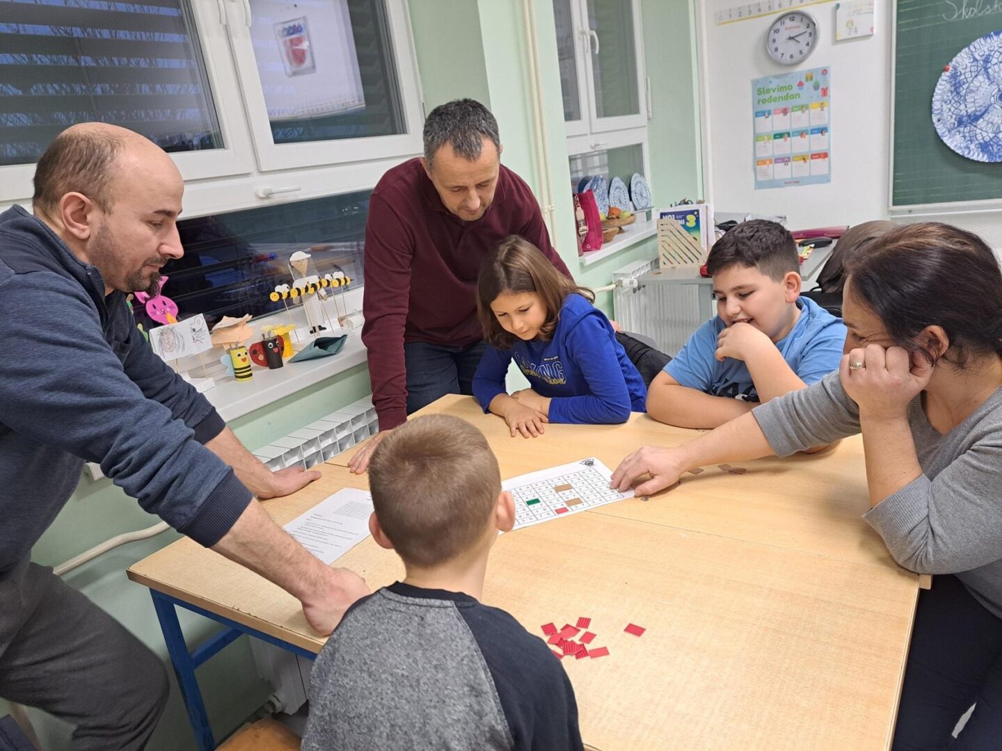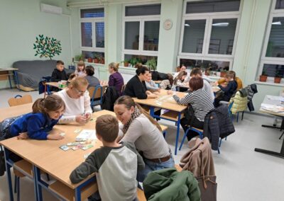 Ove godine se u organizaciji HMD održala 13. Večer matematike a naša škola je sudjelovala 12.put. Večer matematike je skup interaktivnih radionica koje potiču izgradnju pozitivnog stava prema matematici. Cilj je popularizacija matematike te poticaj učenicima za nastavak matematičkog obrazovanja. Sudionici večeri matematike su bili učenici od 1. do 8. razreda i njihovi roditelji. Ove godine u projekt su se uključile sve područne škole, ukupan broj sudionika ( učenici +roditelji + učiteljice) je rekordnih 242. Po poslanim izvješćima učiteljica, može se zaključiti da je svuda bilo veselo, da su svi sudionici dobro zabavili.