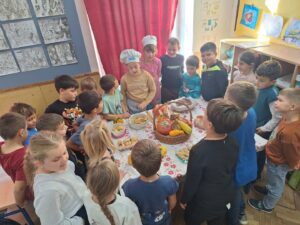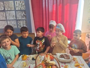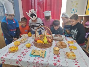 Zahvaljujući vrijednim majkama i bakama postavili su svečani stol s domaćim pekarskim proizvodima i jesenskim plodovima te usmeno opisivali što su donijeli.