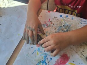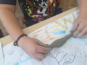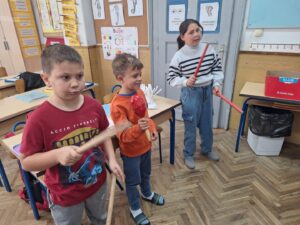 Radeći u paru, učenici 2.a razreda stvarali su košaricu s kruhom i pecivima izražavajući kontrast glatko – hrapavo te upotrebljavajući likovnu tehniku glina.