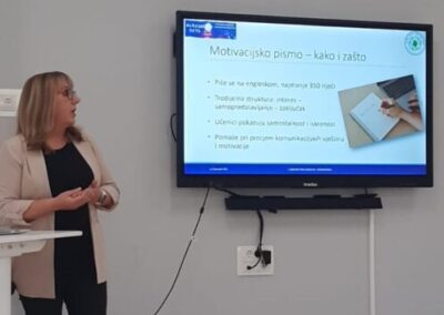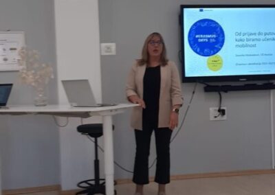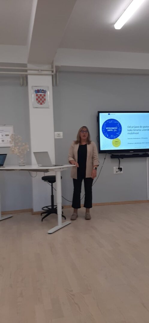 Naša učiteljica Davorka Medvedović predstavila je rad Osnovne škole Rovišće kroz izlaganje „Od prijave do putovanja – kako biramo učenike za mobilnost“. U prezentaciji je prikazan proces pripreme i selekcije učenika za sudjelovanje u Erasmus+ mobilnostima – od objave poziva i motivacijskih pisama, preko razgovora s kandidatima, do stvaranja timova koji će najbolje predstavljati školu u međunarodnom okruženju. Poseban je naglasak bio na razvoju odgovornosti, komunikacijskih vještina i timskog duha kod učenika.