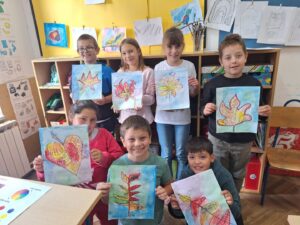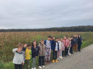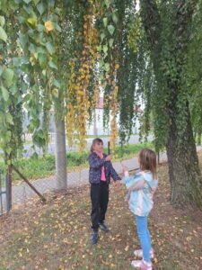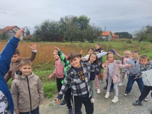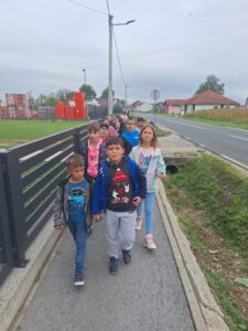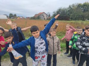 Učenici 1. i 2.a razreda PO Prgomelje sa svojim su razrednim učiteljicama Glorijom Vuković i Jasminom Imbrišić obilježili POZDRAV JESENI integriranim nastavnim sadržajima i izvanučioničnom nastavom. Interpretirali su slikovnicu Vjeverice svađalice, rješavali i osmišljavali jesenske matematičke priče te pjevali pjesme i brojalice o jeseni uz pokret (oponašanje vjetra u krošnjama, šumskih životinja, leta ptica). U školskom dvorištu te u šetnji selom uz njive, vrtove i voćnjake do obližnje šume istraživali su jesenske promjene u prirodi (vrijeme, biljke, životinje, ljudi). U šumi su igrali elementarne igre. Svaki učenik ponio je iz šume jedan jesenski list koji je slikao tijekom sata Likovne kulture.